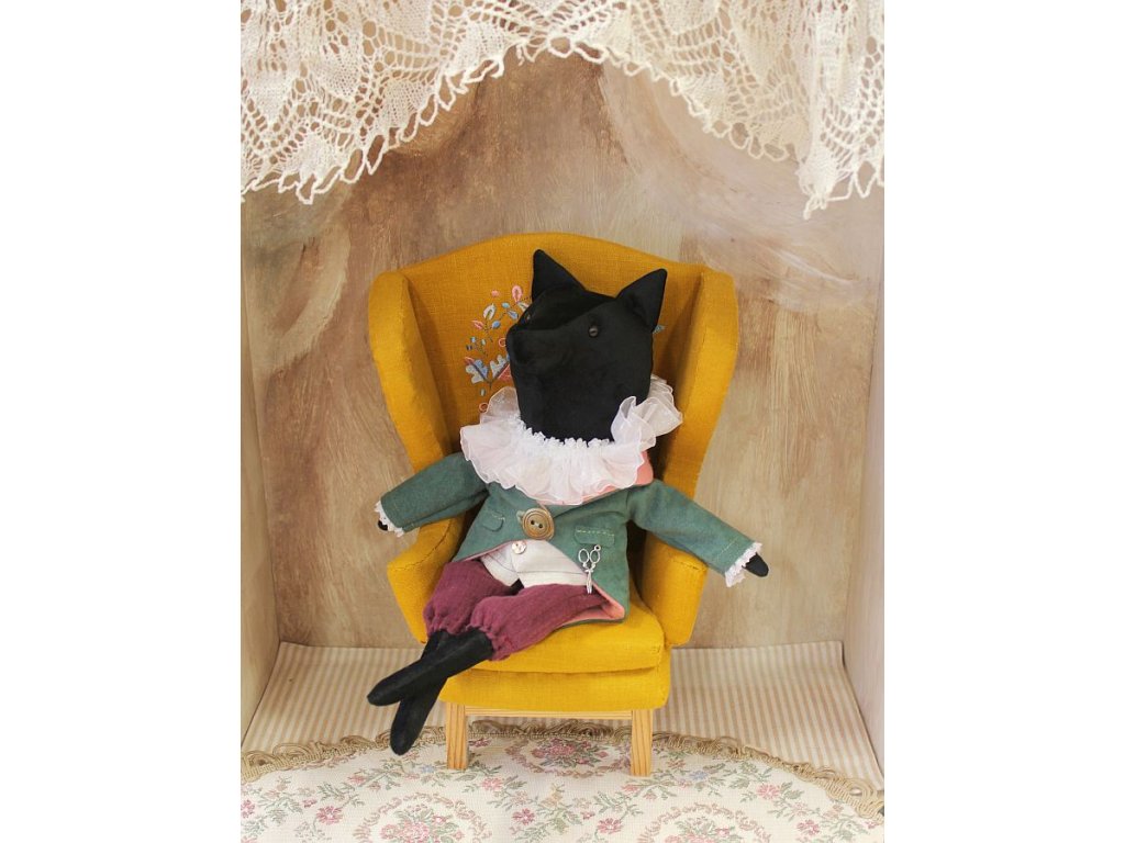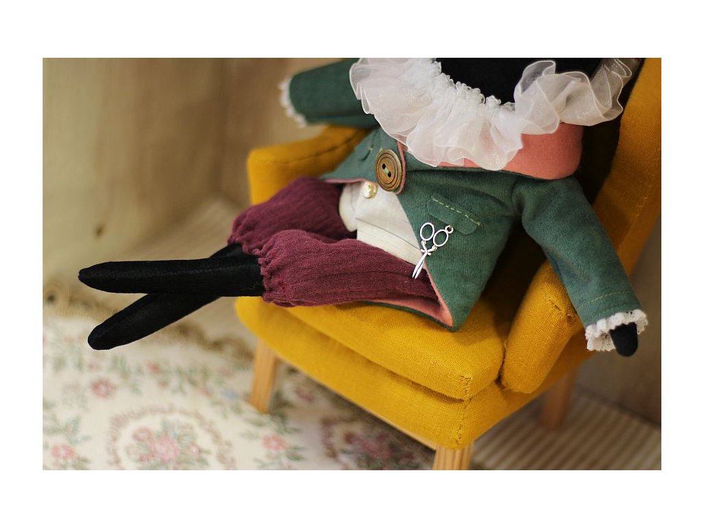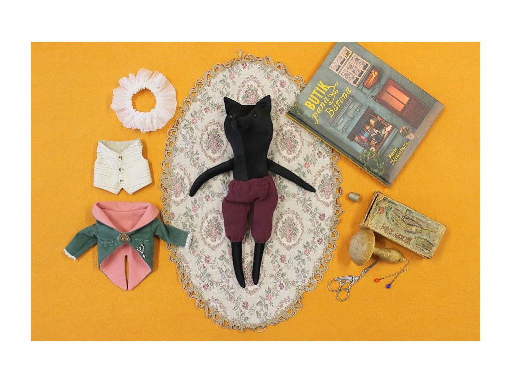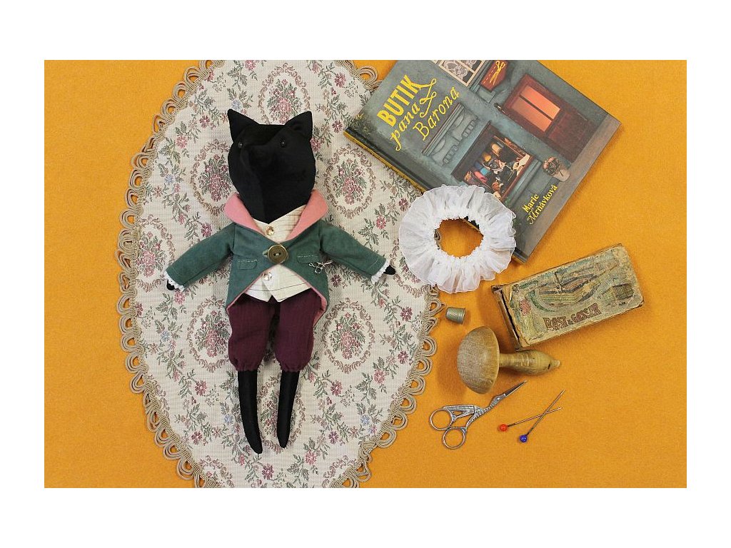 Pan Baron má sametovou srst a je to velký elegán. Jelikož mu v krvi koluje modrá krev, zdobí se noblesním tylovým nákrčníkem. Nosí fráček s óbr knoflíkem, vestičku ze stříbřité látky a pumpky s měkkého mušelínu. No, řekněte, sluší mu to, že?