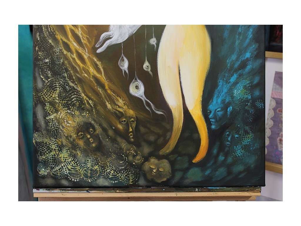 Obraz jsem začala malovat o Vánocích 2024 a s přestávkami pokračovala až do začátku léta 2025.