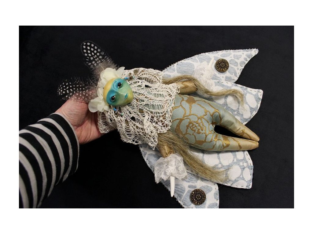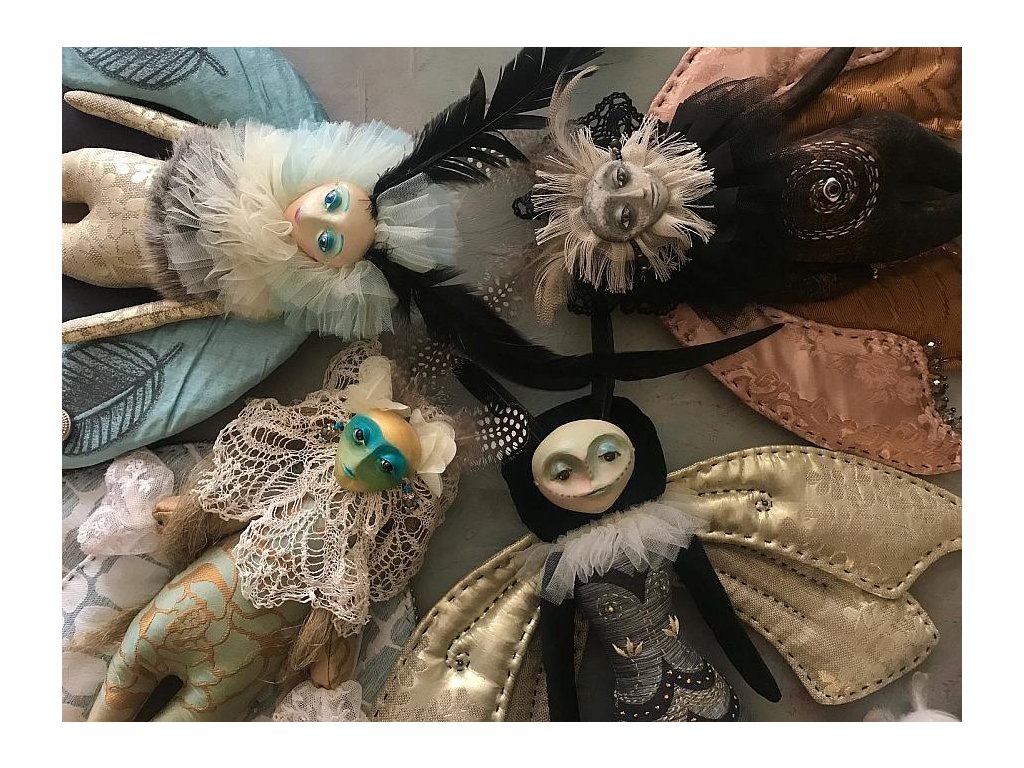 Na začátku si vyberete již hotovou hlavičku, protože hmota schne velmi pomalu (den až dva podle tloušťky tvaru). Výběr bude ze více variant hlaviček, které pro vás vymodeluji a povrchově začistím. Dál už budete pracovat podle svého vkusu a umu: hlavičku si společně pomalujeme akrylovými barvami a zafixujeme uměleckým lakem. A pak už se budete moci pustit do šití těla a křídel a dalšího dekorování.