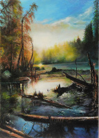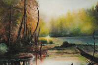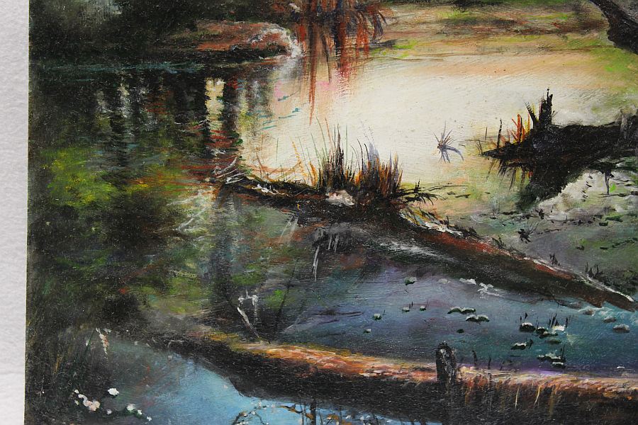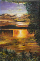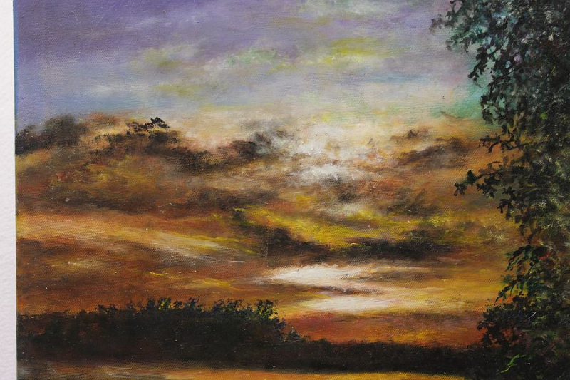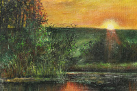 Večer na řece / 50x39 cm / olejomalba na desce, 2025 / 3000,-Kč