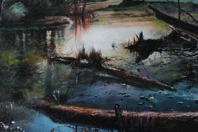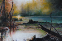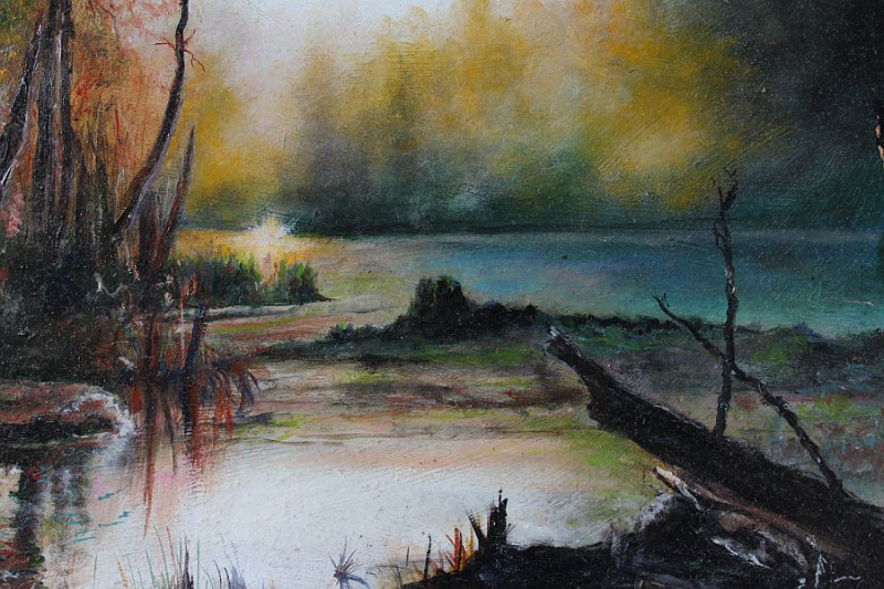 Večer na řece / 50x39 cm / olejomalba na desce, 2025 / 2800,-Kč