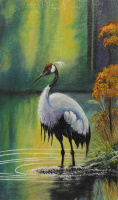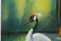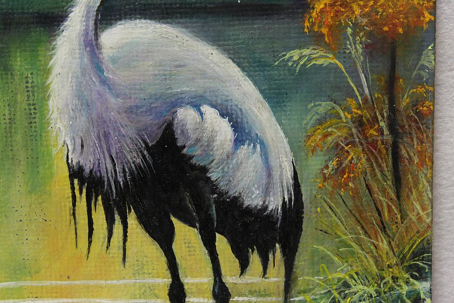 Jeřáb / 23,5x39,4cm / olejomalba na desce, 2025 / 2000,-Kč