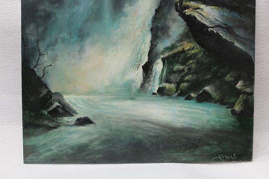 Vodopád / 54,5x38,5 cm / olejomalba na desce, 2025 / 3000,-Kč