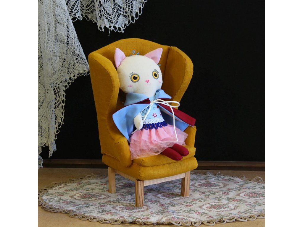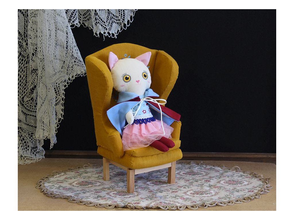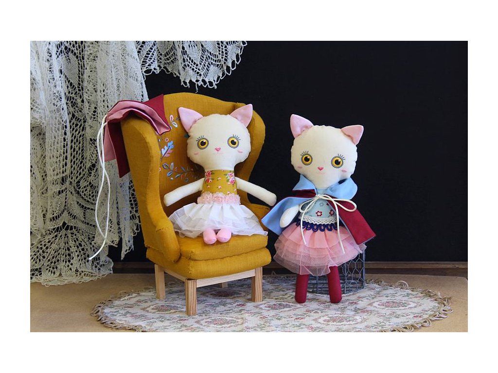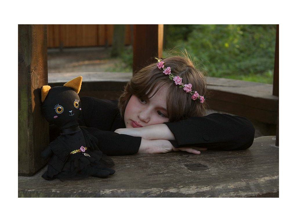 Kočička má oboustranný plášť - z jedné strany je růžový, z druhé vínový. Uvazuje se na saténovou šňůrku.