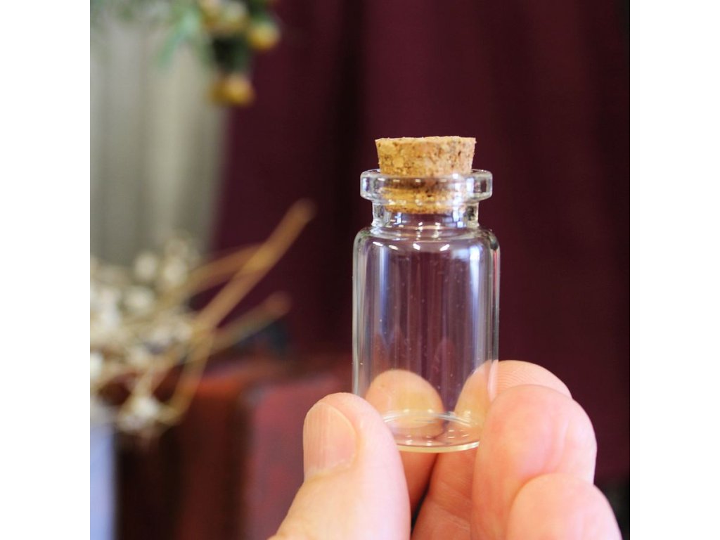 Lahvička je celá ze skla, vysoká 4 cm. Špunt je korkový.