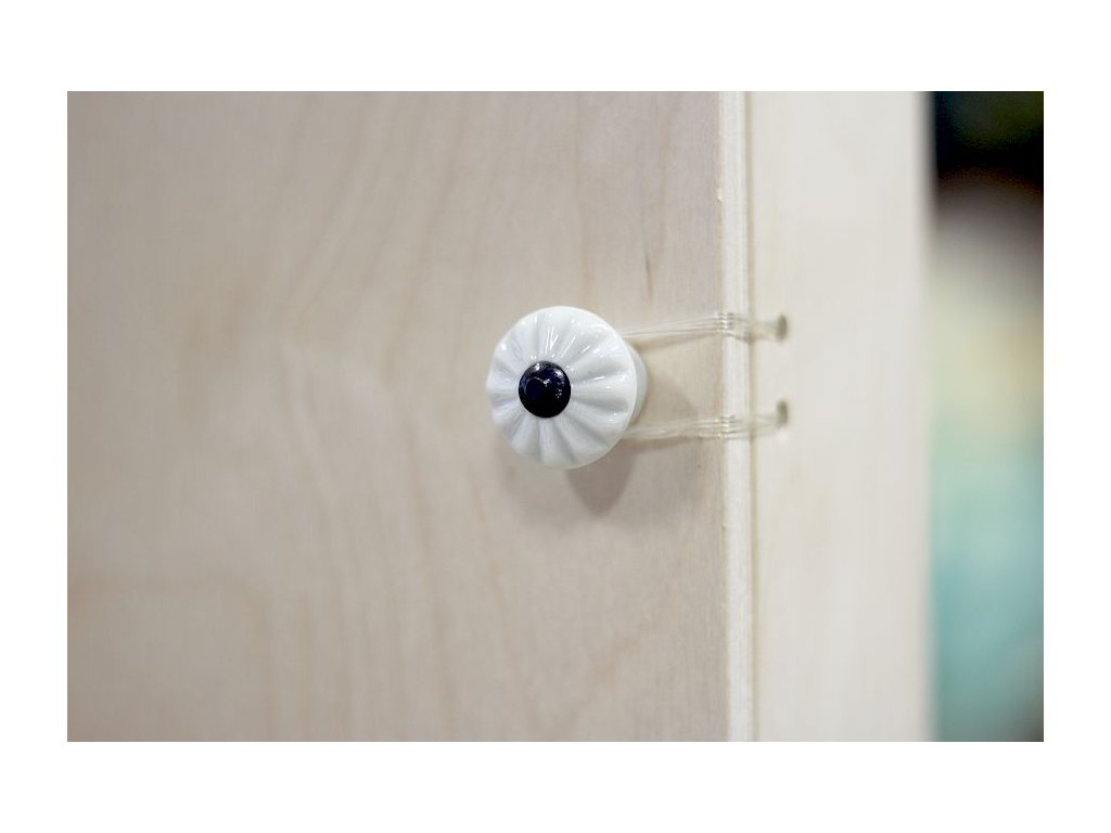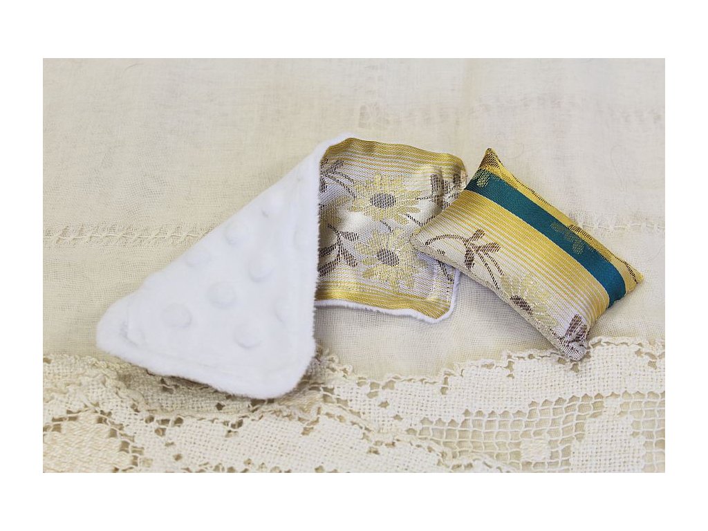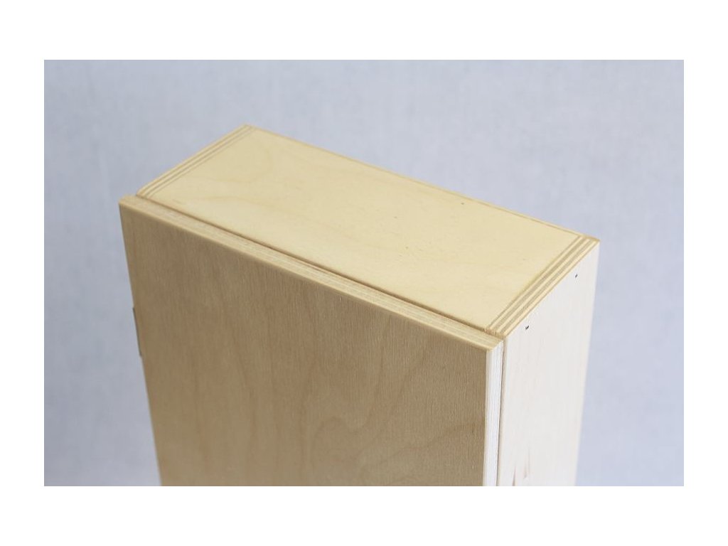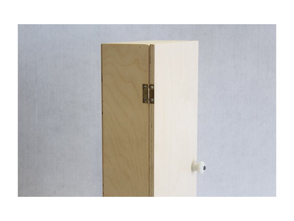 Skříňka je vyrobená od truhláře z pevné překližky, zavírání je opatřeno porcelánovou knopkou. Součástí je jedna poduška a saténový polštářek.