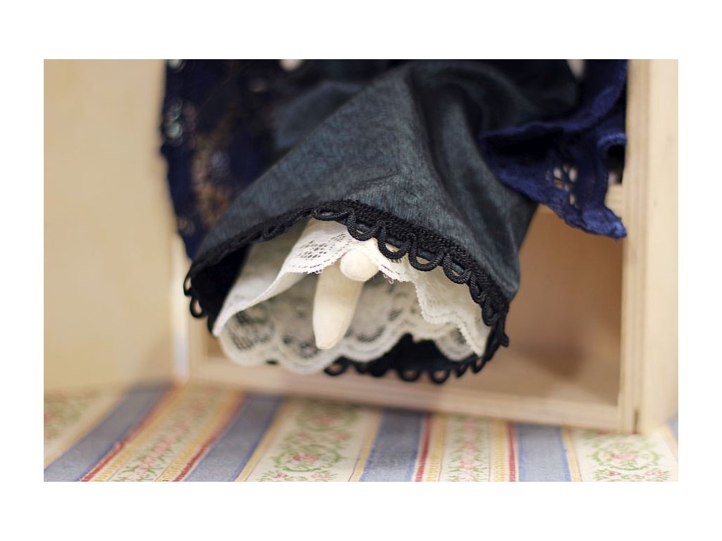 Panenka má ve svém šatníku dvoje šaty, 1 krajkovou spodničku, 1 semišový kabátek, 1 čepec a 1 krajkový plášť.