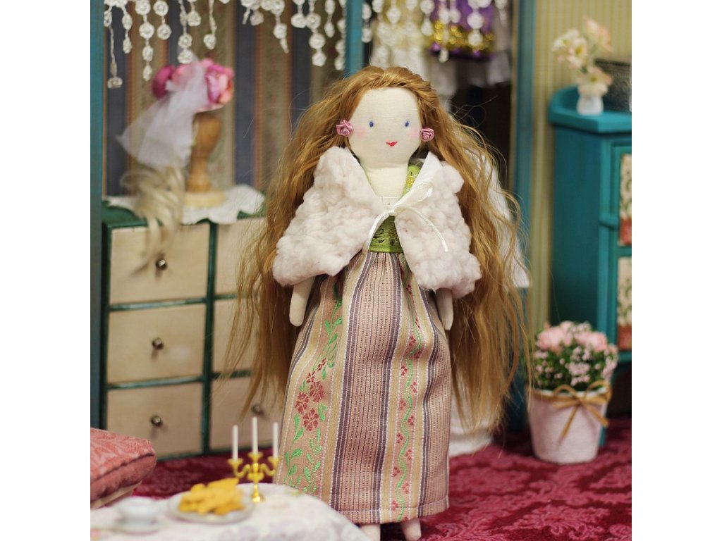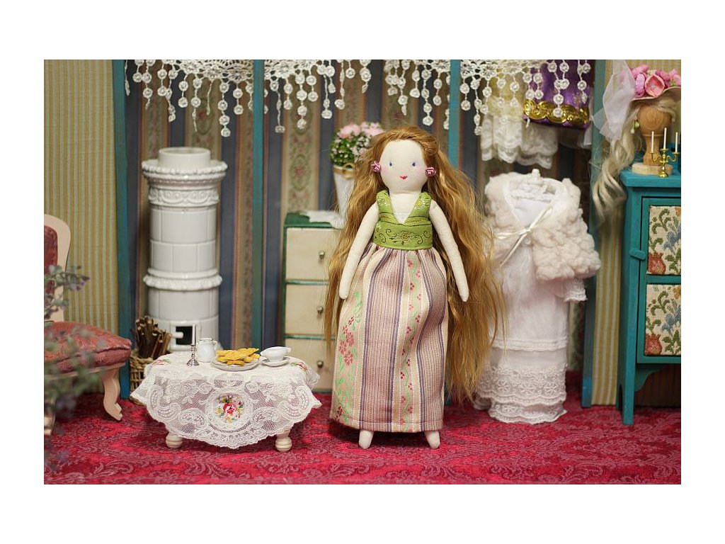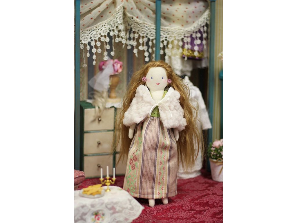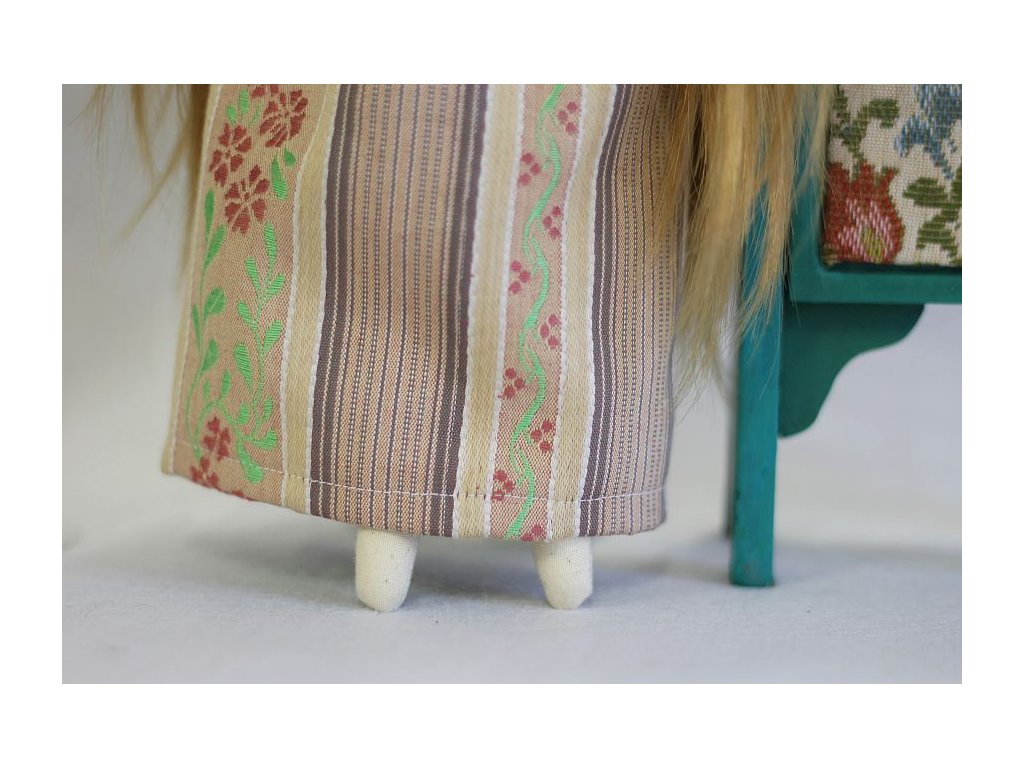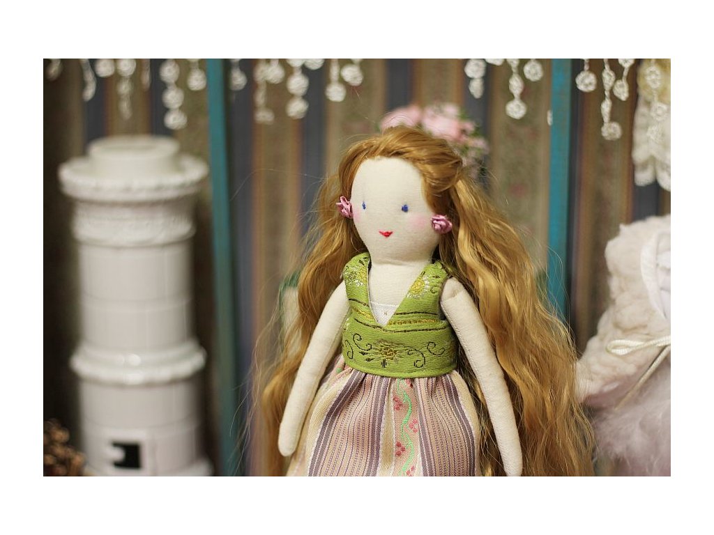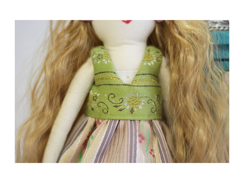 Panenka je ušitá s velikou péčí, ve které jsem zúročila své 20ti leté zkušenosti z výroby hraček pro malé děti. Tyto panenky jsou ovšem dekorativní a nejsou určené ke hraní malým dětem.