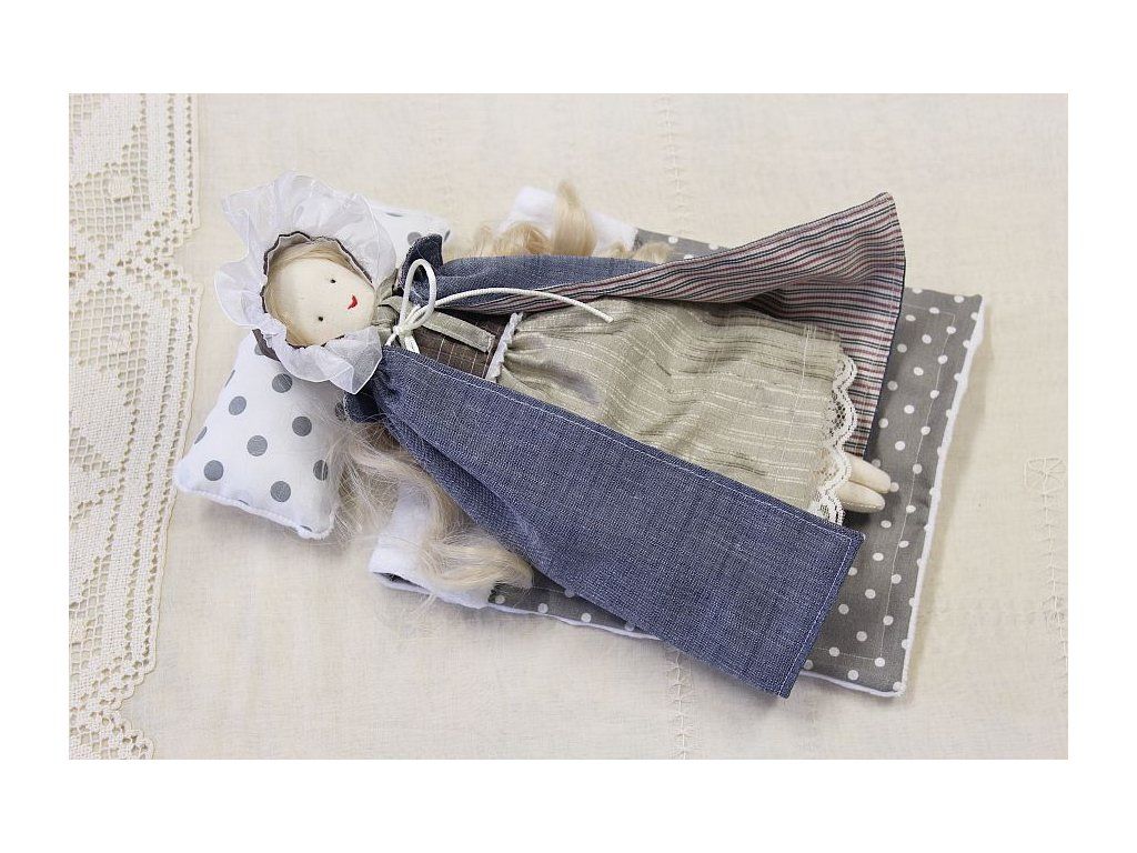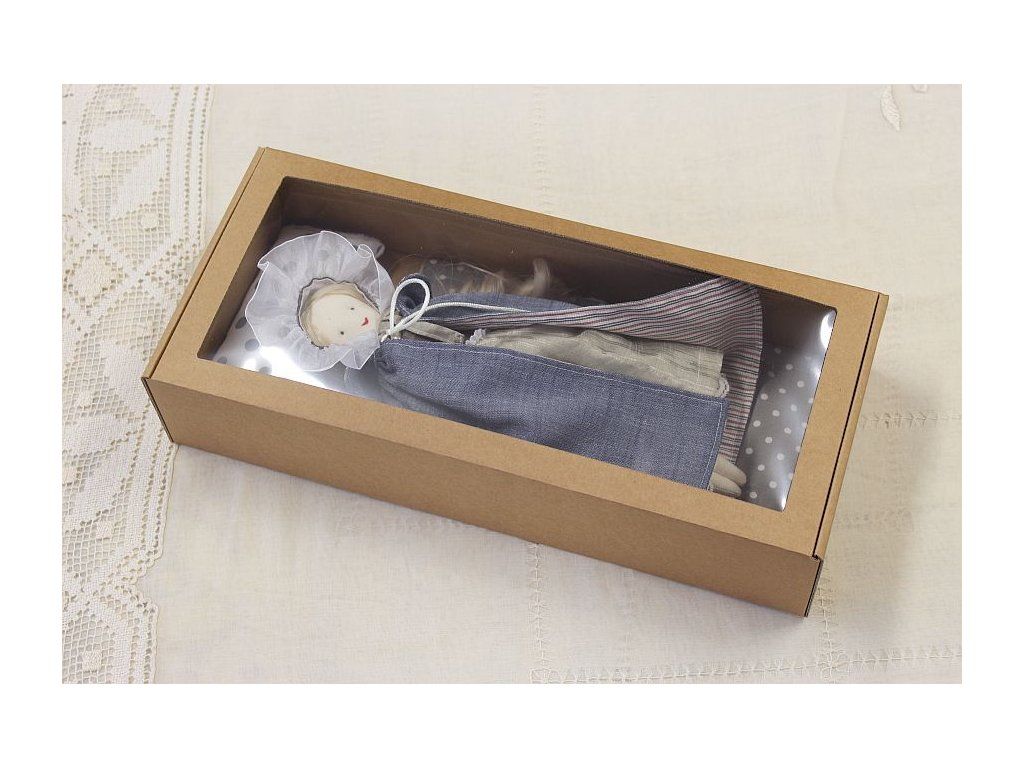 Panenka je balená v dárkové krabičce s okénkem, součástí je polštářek a pokrývka.